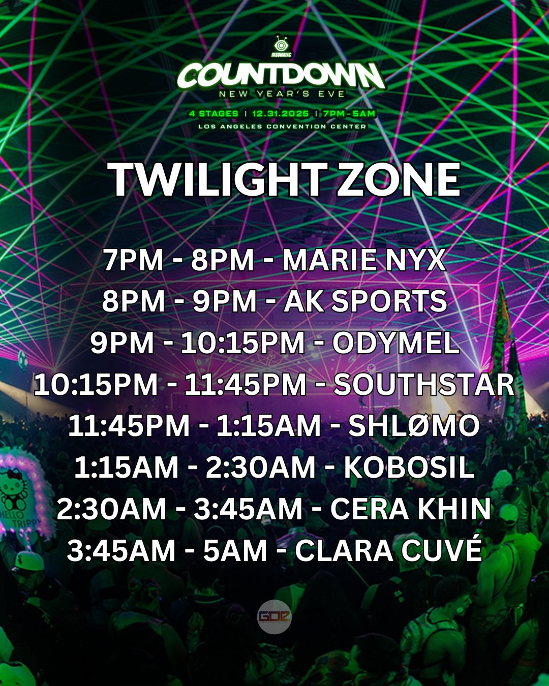 Set times for Insomniac Events’ Countdown NYE In downtown Los Angeles are out!
